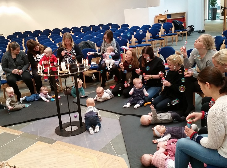 På småbarnssang er det liv og røre; der er det sang og spill, bibelfortelling, lek, latter og dans.